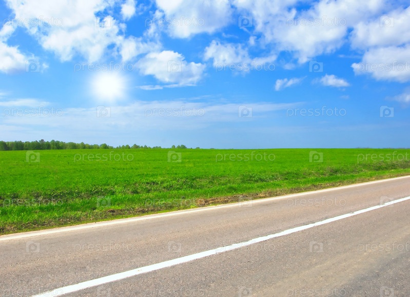 Дорого по лугам с лесами на полном солнце