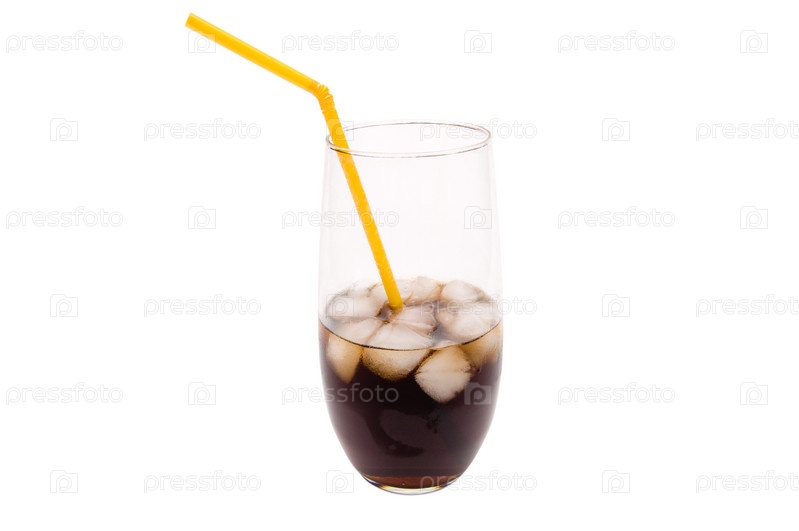 Пейте со льдом в стакане с трубкой для коктейля