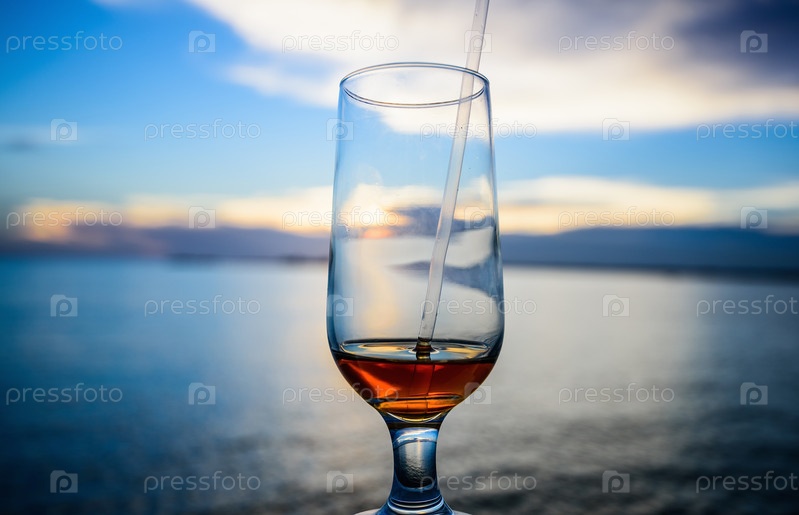 Стакан вина на фоне морского
