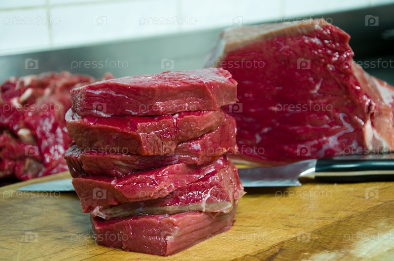 Стейк из говядины разрезан и готов к жарке