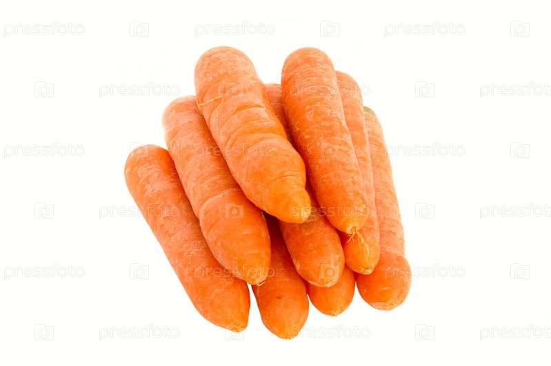 Зрелые сладкие красные моркови на белом фоне