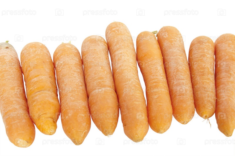 Зрелые сладкие красные моркови на белом фоне
