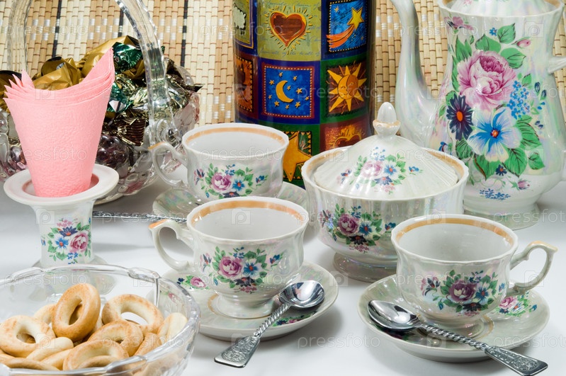 Покрытый стол для питья чая с чайным сервисом