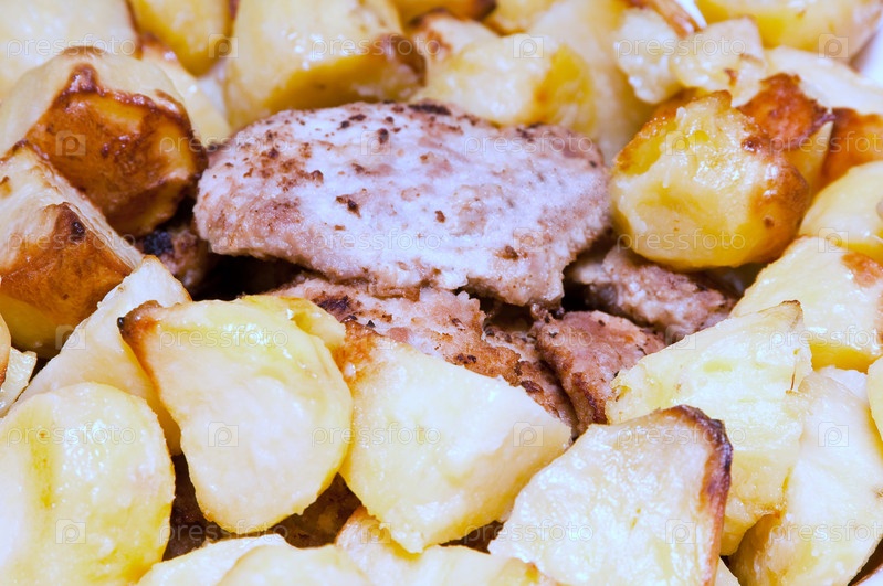 Запеченный картофель с нарезами мяса