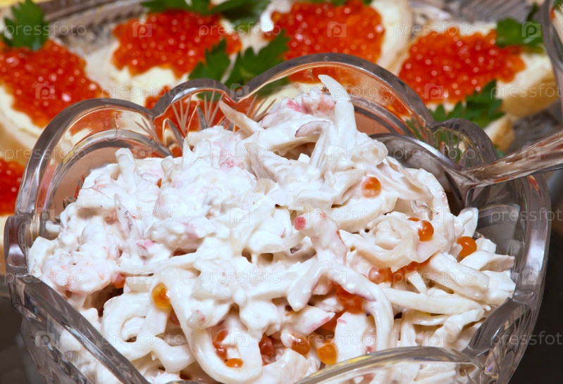 Салат кальмара из соуса красной икры, майонез