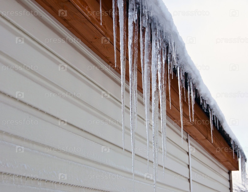 Длинные кусочки льда висят с крыши дома