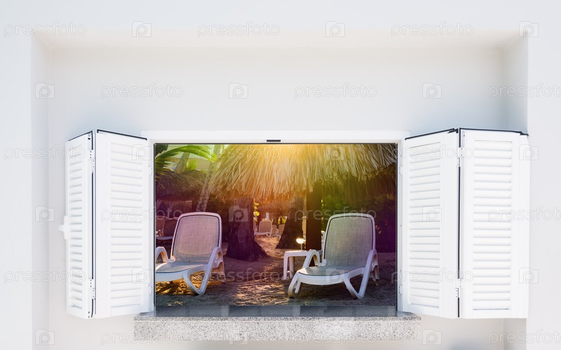 открытый морской пляж трава зеленая Окно