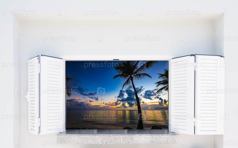 Морской закат из окна