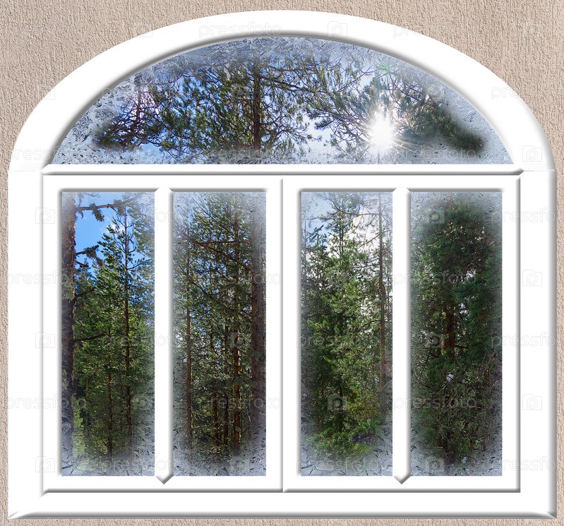 Вид через замороженное пейзажное окно