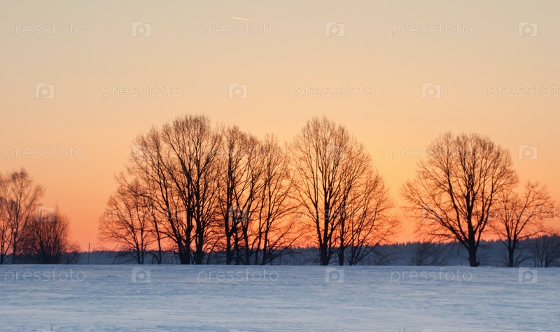 Силуэт деревьев на фоне холодного утра