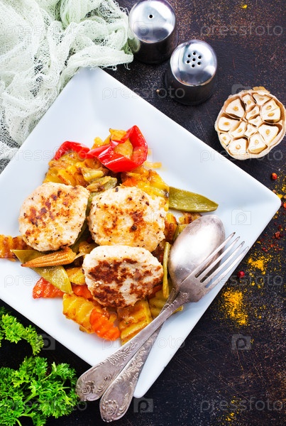 Выпеченные овощи с котлетом