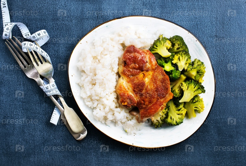 Рис и мясо с бриколи