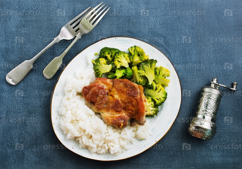 Рис и мясо с бриколи
