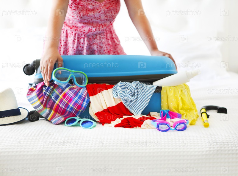Одежда и аксессуары в бирюзовом чемодане