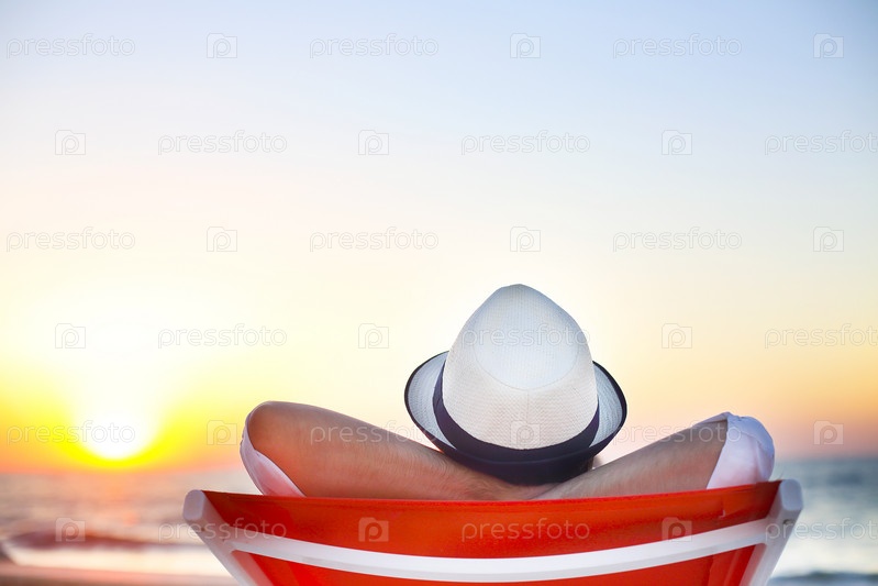 Молодой человек отдыхает на пляже