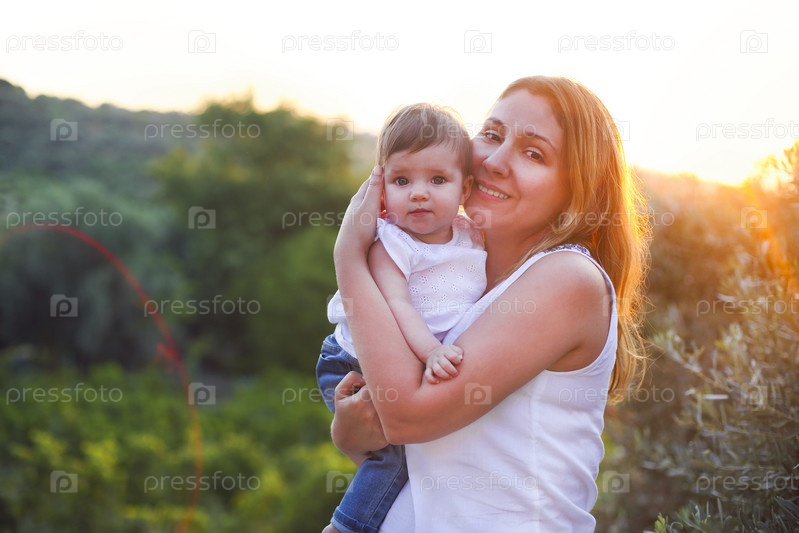 Молодая красивая женщина с ребенком на свежем воздухе