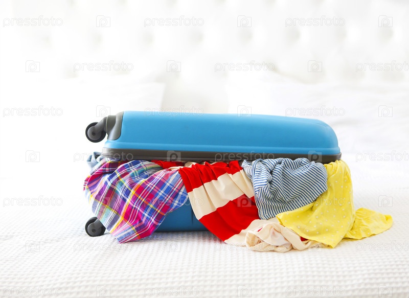 Одежда и аксессуары в бирюзовом чемодане