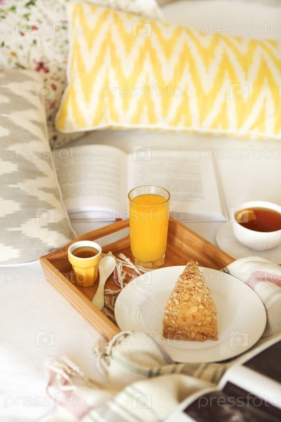 Уютный завтрак в постели с чаем