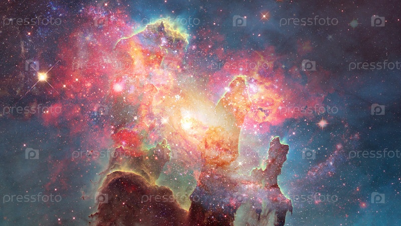 Туманность и спиральные галактики в пространстве