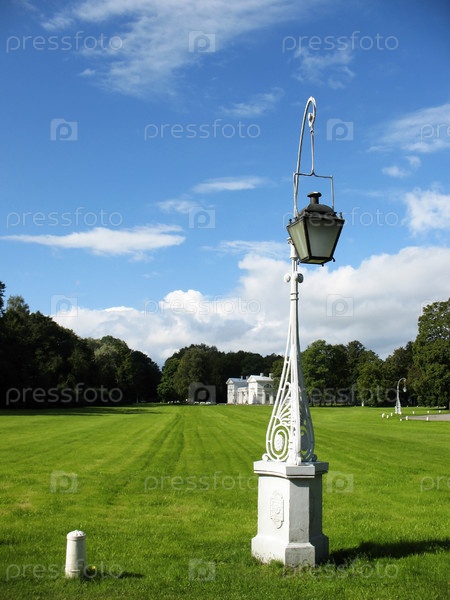 Фонарь у Елагина дворца на фоне Масляного луга. Санкт-Петербург