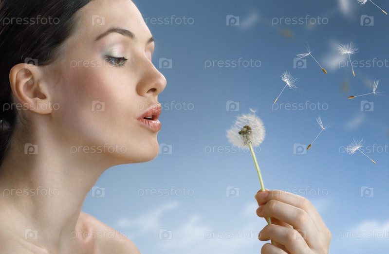 Красивая девушка с одуванчиком