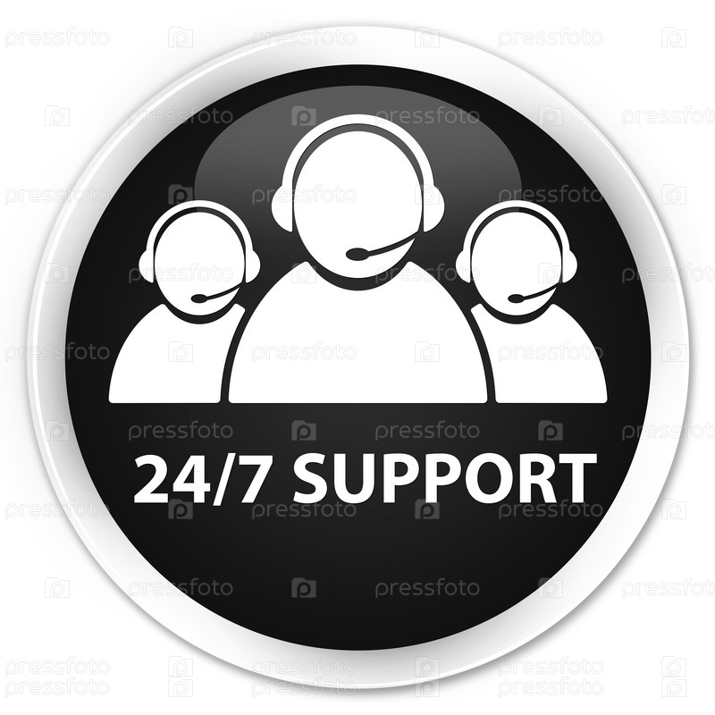 Поддержка 24/7 (икона команды по уходу за клиентами) премиум черная круглая кнопка