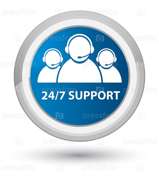 Поддержка 24/7 (икона команды по уходу за клиентами) синяя круглая кнопка