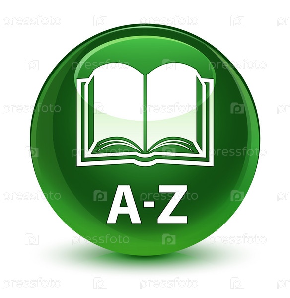 A-Z (икона книги) стеклянная мягкая зеленая круглая кнопка