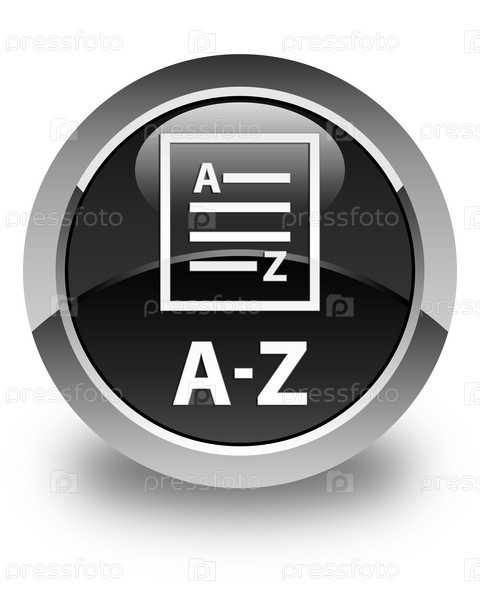 A-Z (икона страницы списка) глянцевая черная круглая кнопка А