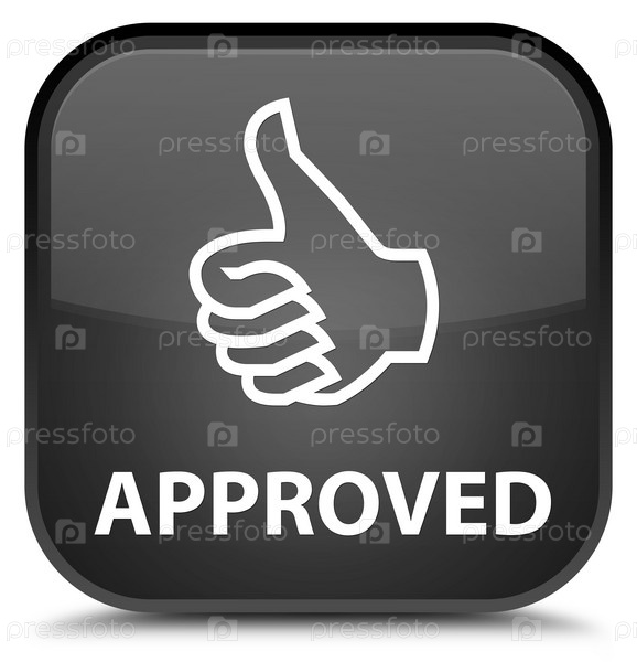 Утверждено (икона пальцев вверх) специальная черная квадратная кнопка
