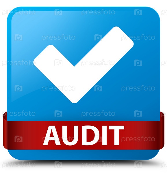 Audit (validate icon) синий синий квадратный кнопка красная лента посередине