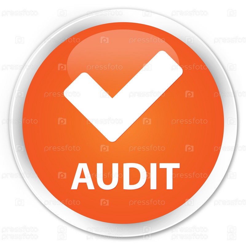 Аудит (икона проверки) премиум оранжевая круглая кнопка
