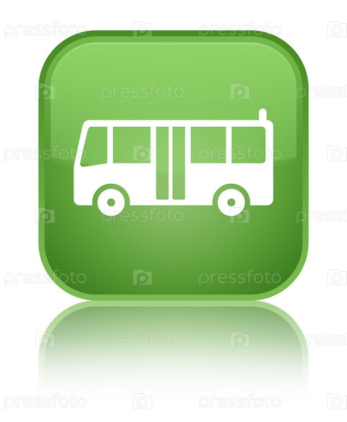 Икона автобуса специальная мягкая зеленая квадратная кнопка