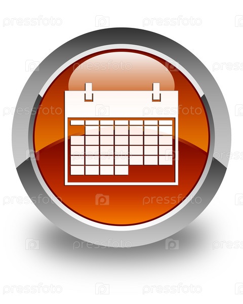 Икона календаря блестящая коричневая круглая кнопка