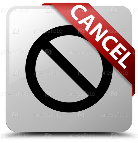Отменить (икона знака запрета) белая квадратная кнопка красная ленточка в углу