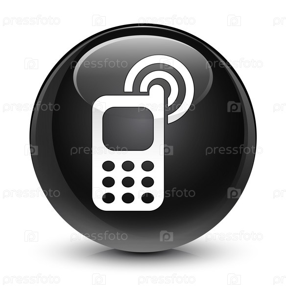 Икона звонка сотового телефона стеклянная черная круглая кнопка