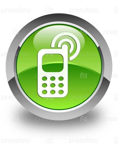 Икона звонка сотового телефона глянцевая зеленая круглая кнопка