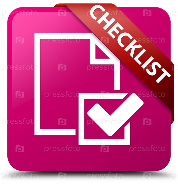 Контрольный список розовая квадратная кнопка красная лента в углу