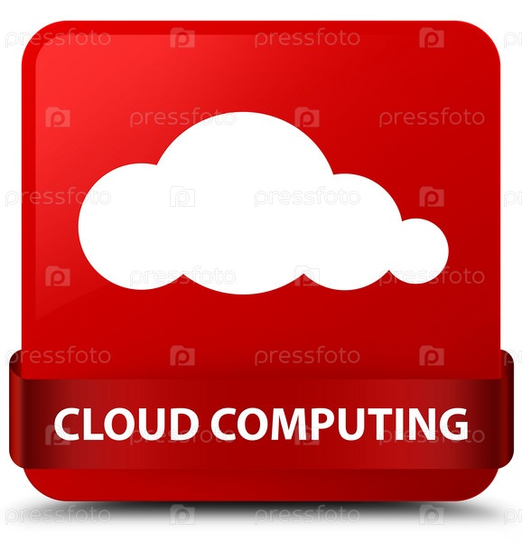 Облачные вычисления красная квадратная кнопка Красная лента посередине