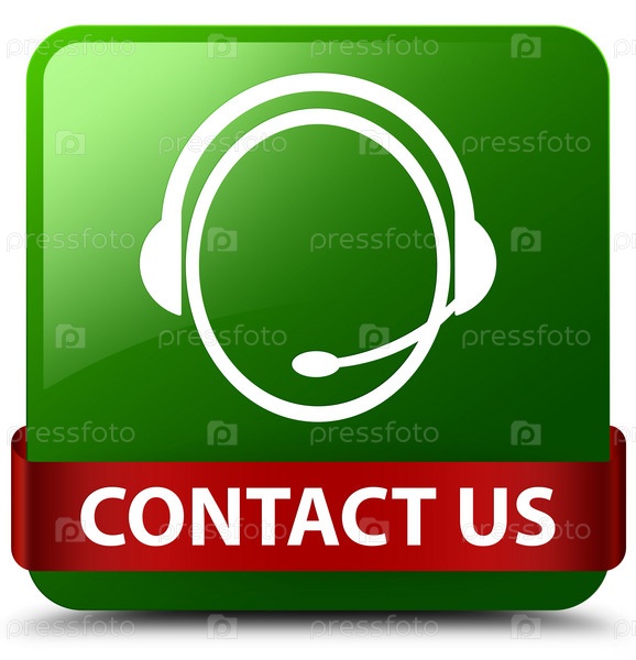 Свяжитесь с нами (икона обслуживания клиентов) зеленая квадратная кнопка красная лента посередине