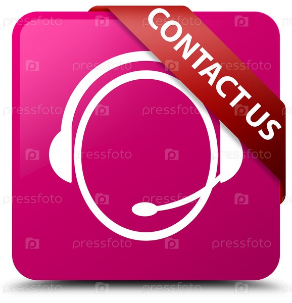 Свяжитесь с нами (икона обслуживания клиентов) розовая квадратная кнопка красная лента в углу