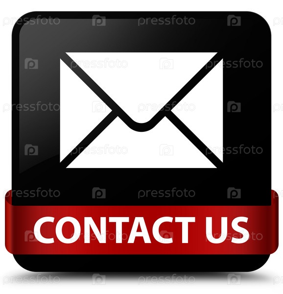 Связаться с нами (икона электронной почты) черная квадратная кнопка красная лента посередине