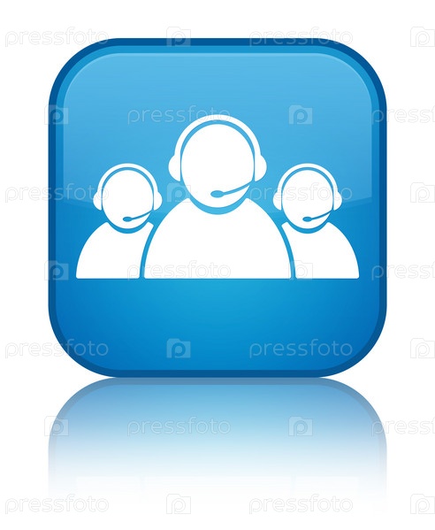 Икона команды обслуживания клиентов специальный синий цвет синего квадратного кнопки