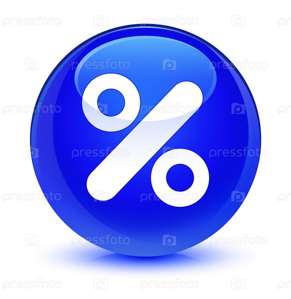 Икона скидки стеклянная голубая круглая кнопка
