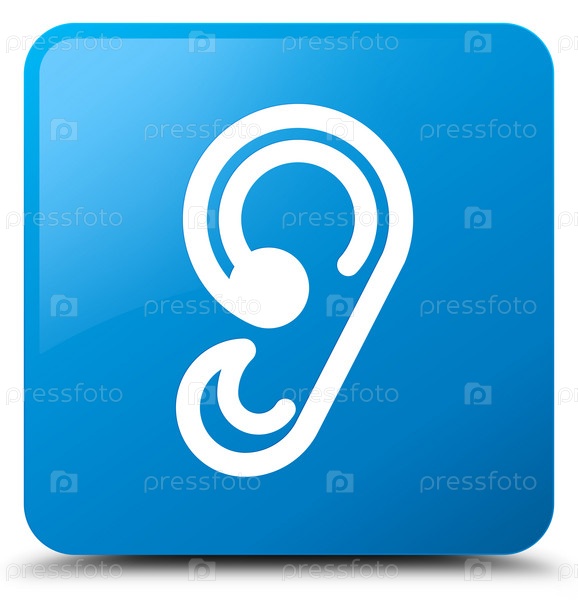 Икона ушей цыановый синий квадратный кнопка