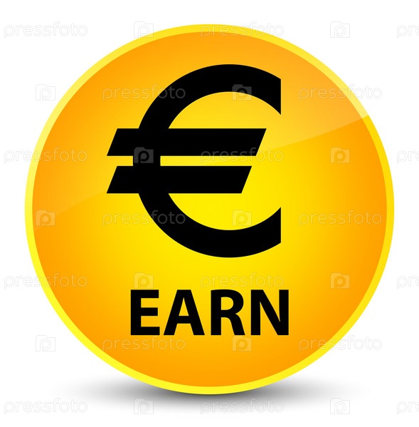 Заработать (знак евро) элегантная желтая круглая кнопка
