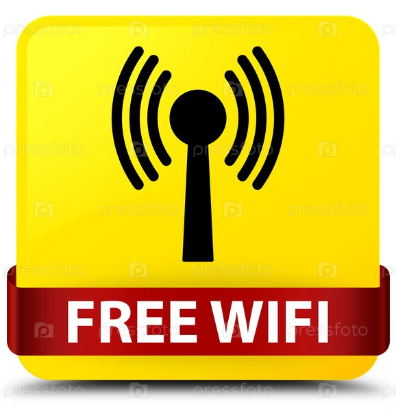 Бесплатный Wi-Fi (сеть WLAN) желтая квадратная кнопка красная лента посередине