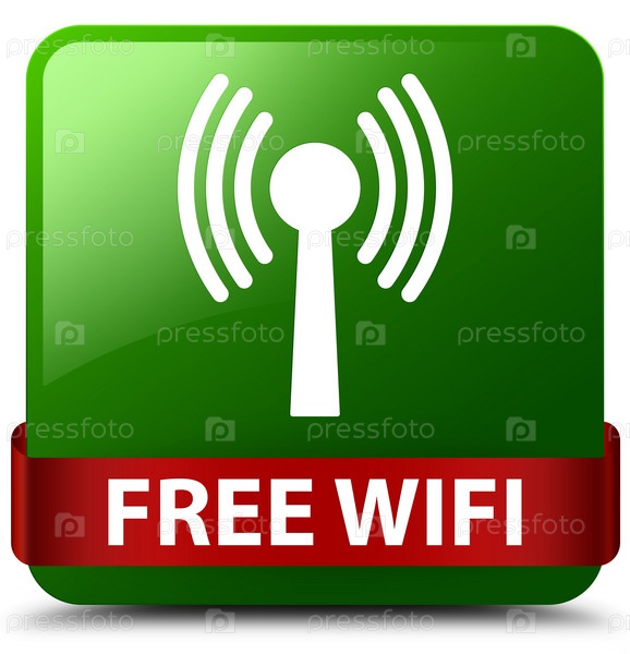 Бесплатный Wi-Fi (сеть WLAN) зеленая квадратная кнопка красная лента посередине