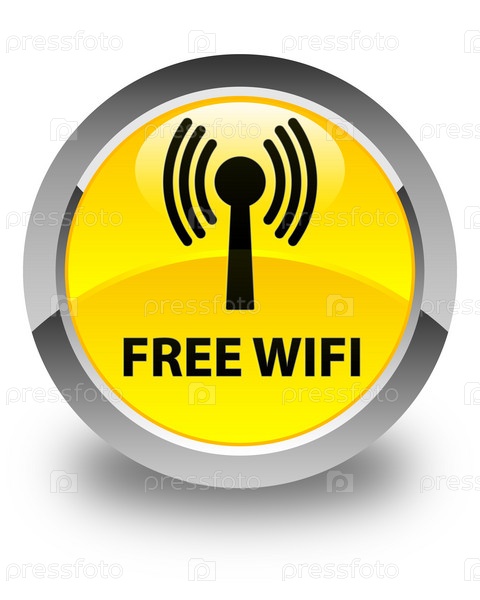 Бесплатный Wi-Fi (сеть WLAN) глянцевая желтая круглая кнопка