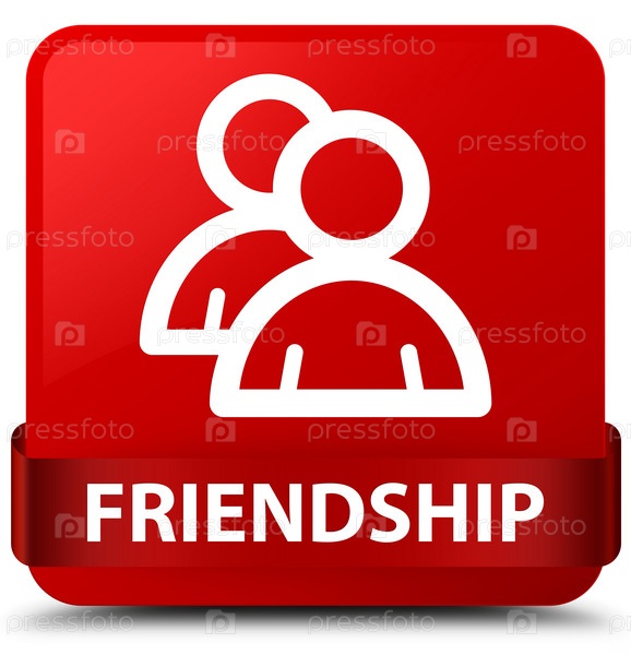 Дружба (икона группы) красная квадратная кнопка Красная лента посередине